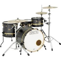 This 3-piece kit is part of Spaun's Custom Series! It is less than 1/4" (5.5mm) thick, and has 8-ply maple shells that produce that rich, deep, resonant tone maple is known for. These drums have a sophisticated look as well as sound. The beautiful satin finish in flat black with the shining stripe and matching lugs makes this kit flashy, but yet classy. This drum kit is among the industry standards for professional level drummers. It has a full-bodied response, which is accompanied by lasting sustain. In addition, the 100% Maple shells provide a great blend of attack and low end, which is favored by many of today's top drummers. Cymbals and hardware sold separately.